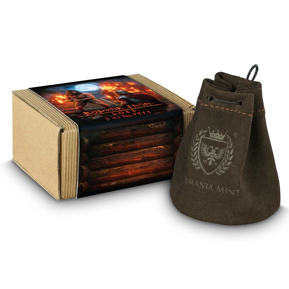 Bödvar Saga series from Germania Mint, telling the story of a warrior marked by loss, sacrifice, and the fight for what he holds most dear. Each coin will be a chapter in a saga of vengeance, redemption, and the birth of a legend. The first issue depicts Bödvar in chains, watching his beloved Astrid die, while the background reveals the tragic abduction of his daughter Sunneva – a moment of pain, rage, and a vow of vengeance.